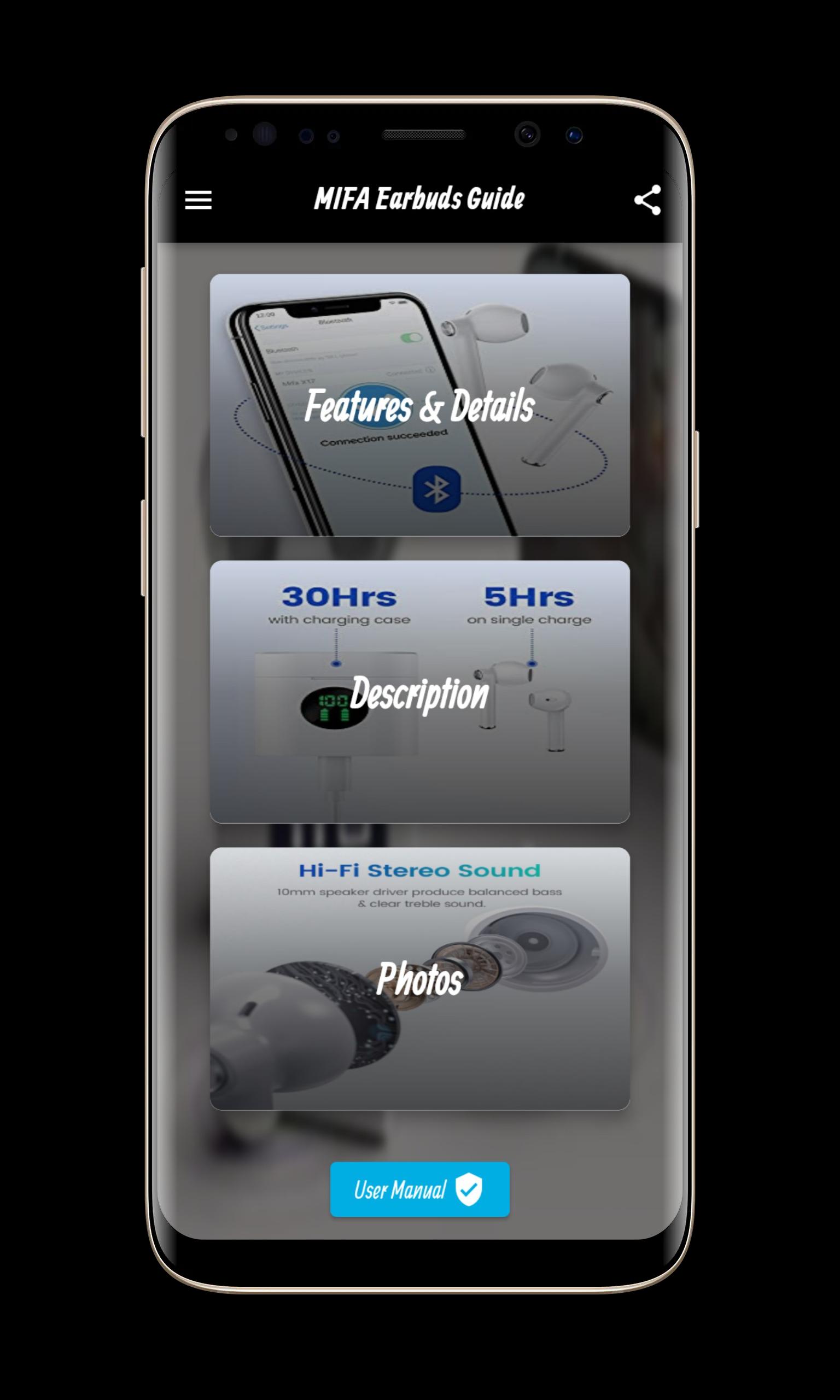 The MIFA Earbuds Guide application contains many information and features of MIFA Earbuds, which you can get clearly and easily. Through the MIFA Earbuds Guide application, you can watch a video of MIFA Earbuds, which gives you the opportunity to see the appearance and features The MIFA Earbuds Guide has many different features including wireless charging and Charge-C Charge: MIFA Bluetooth earbuds support wireless charging so you can pair it up on the wireless charger (not included) to get charging
