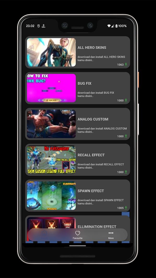 Pada aplikasi ini tersedia banyak MOD SKIN et juga file aslinya yang dapat didownload et dipasang secara langsung tanpa ribet. MOD SKIN akan ditambahkan setiap saat tanpa harus update aplikasi di playstore, nanti akan ada notifikasi ketika ada update MOD SKIN yang baru.