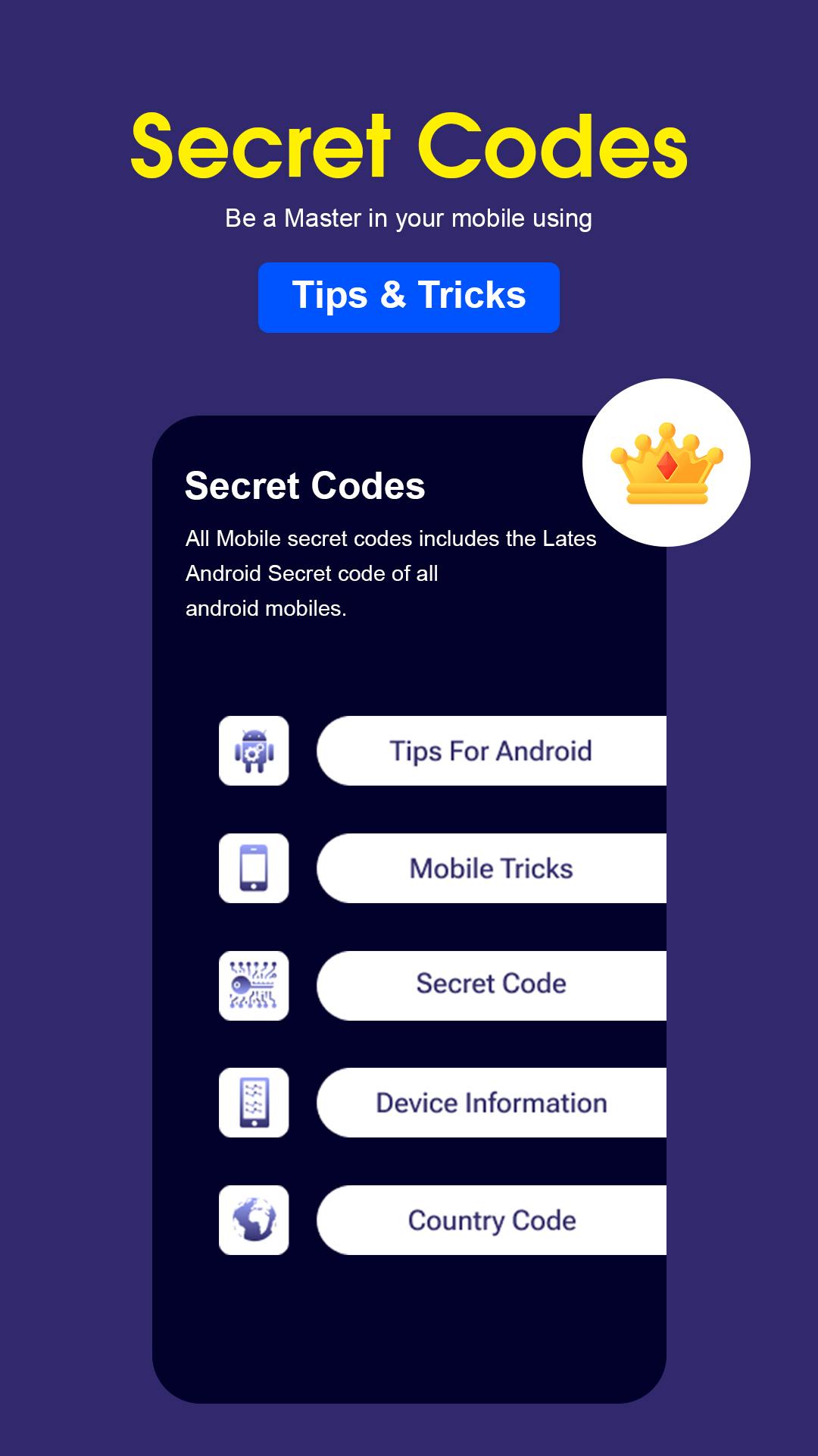 Install Mobile Secret Codes & Tips app for free, get the hidden settings and secret hacks and unlock a secret world of your android device!
