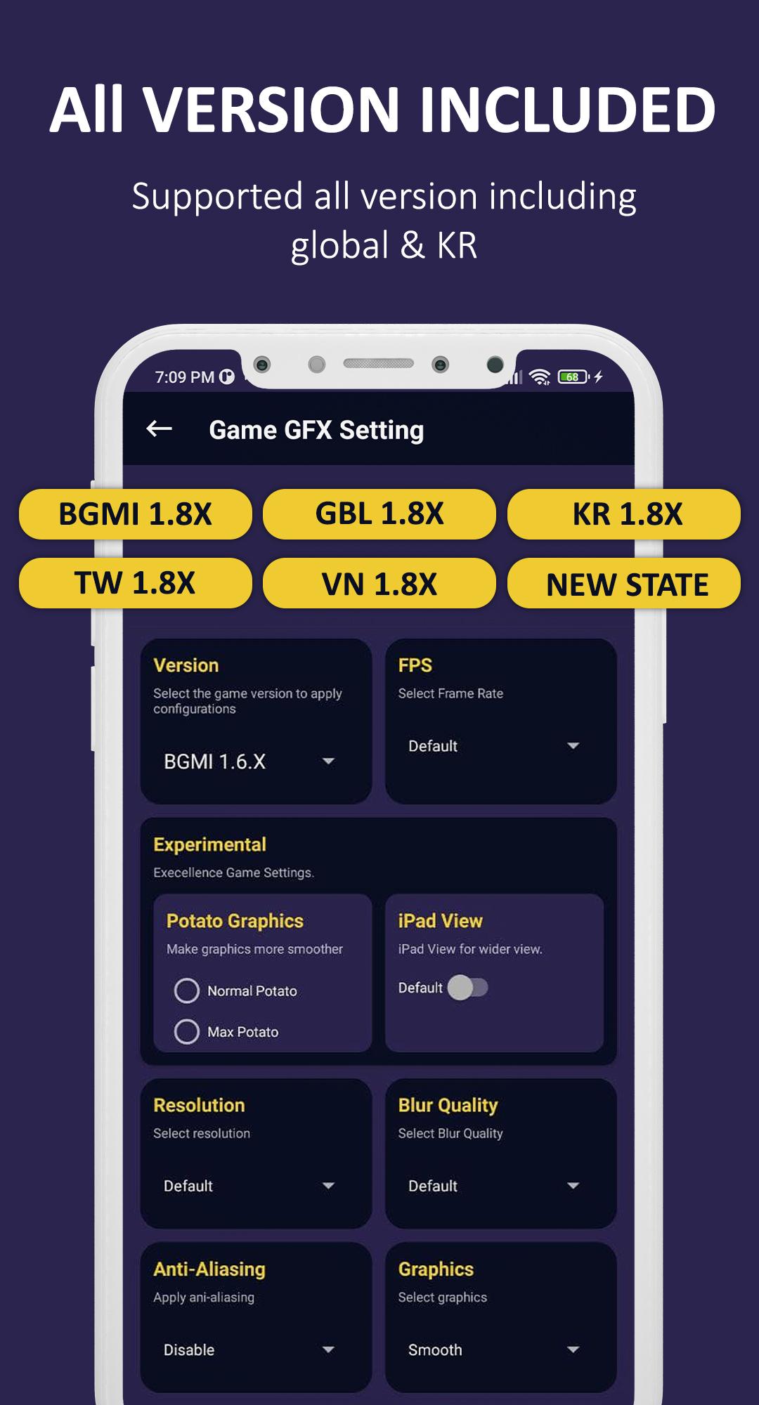 • After unlocked all setting file you can select the graphics, frame rate, version and all other options according to your own.