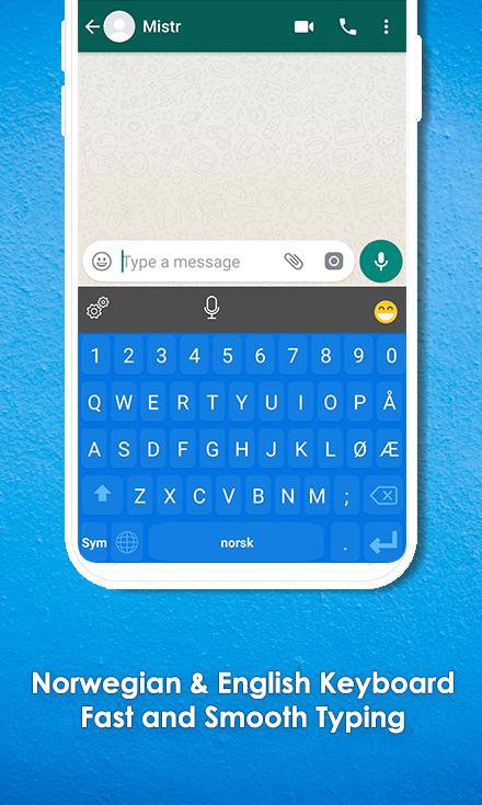 Norwegian english keyboard for whatsapp typing. English, Norwegian keyboard with emoji is literally filled with maximum colored background themes and keypad skins with emojis and smileys. Norwegian offline keyboard works completely without internet availability.
