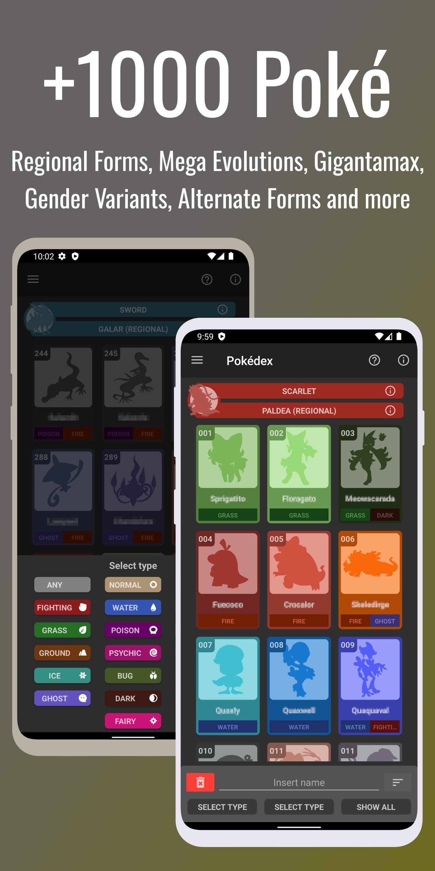 Contains detailed data for all Poké monsters to date, support for all games from Generation 1 to Generation 9 (Poké Scarlet and Poké Violet) including all DLC, The Teal Mask, The Indigo Disk (The Hidden Treasure of Area Zero).