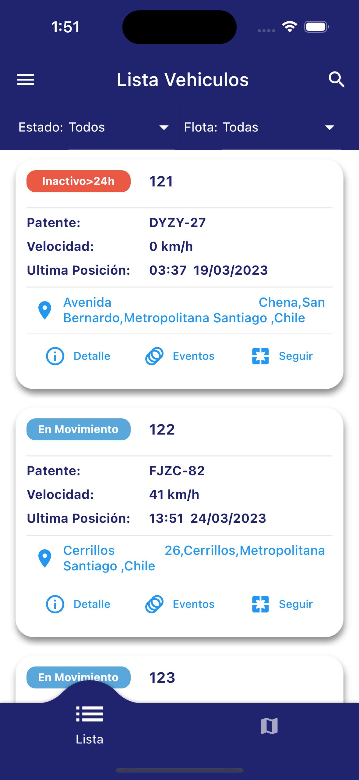 With Rastreosat it is possible to visualize online the location of the vehicles in a way