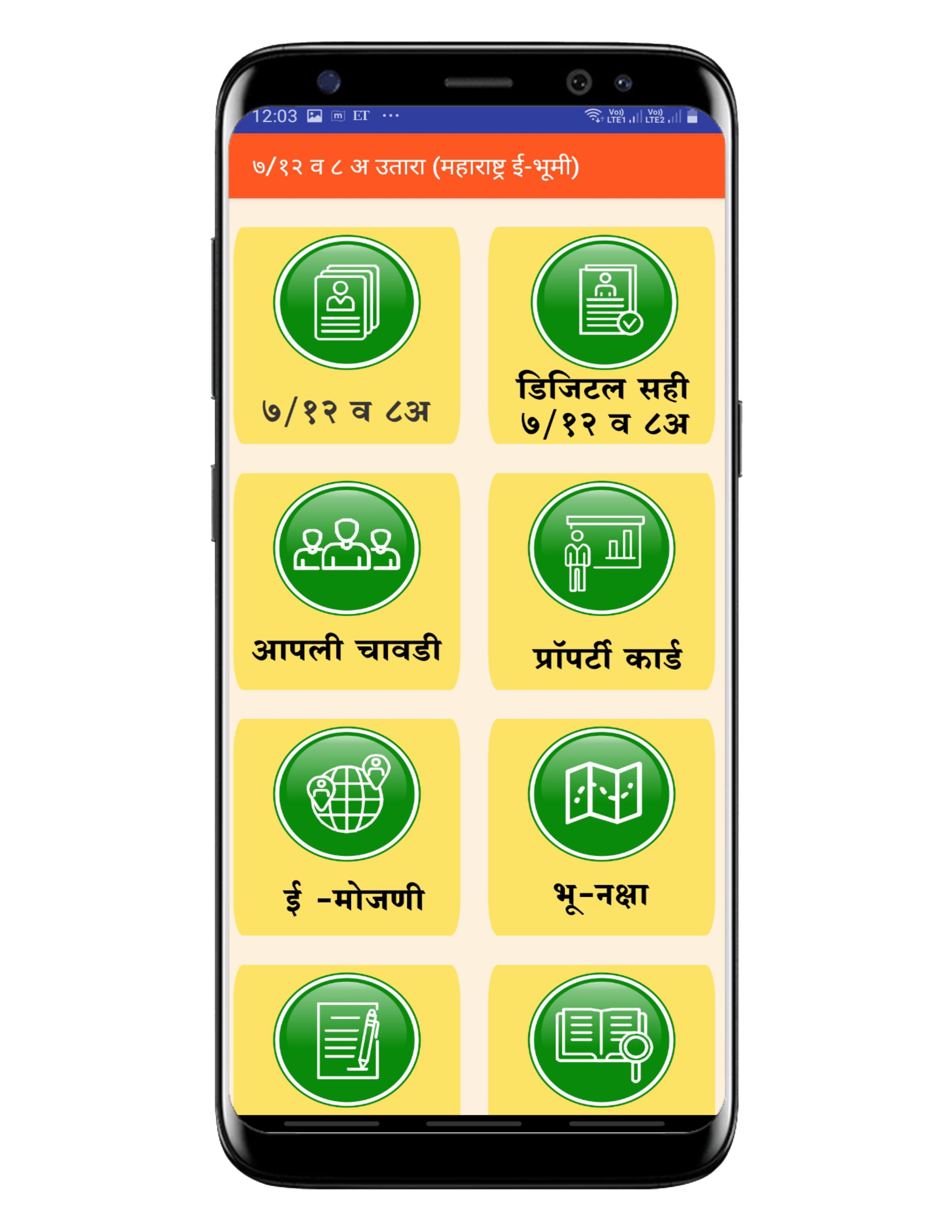 The Utara (bhumi abhilekh from mahabhulekh) gives information of the survey number of the land, Land owner name, the area of the land, the type of cultivation (irrigated / rain fed). By use of this Maharashtra E-Bhumi App can see his land 7/12, 8(a), 6and more in details. User can see more information of land via survey number, District, Taluka, Village Survey Number. User can get their land details any time and anywhere from their mobile.