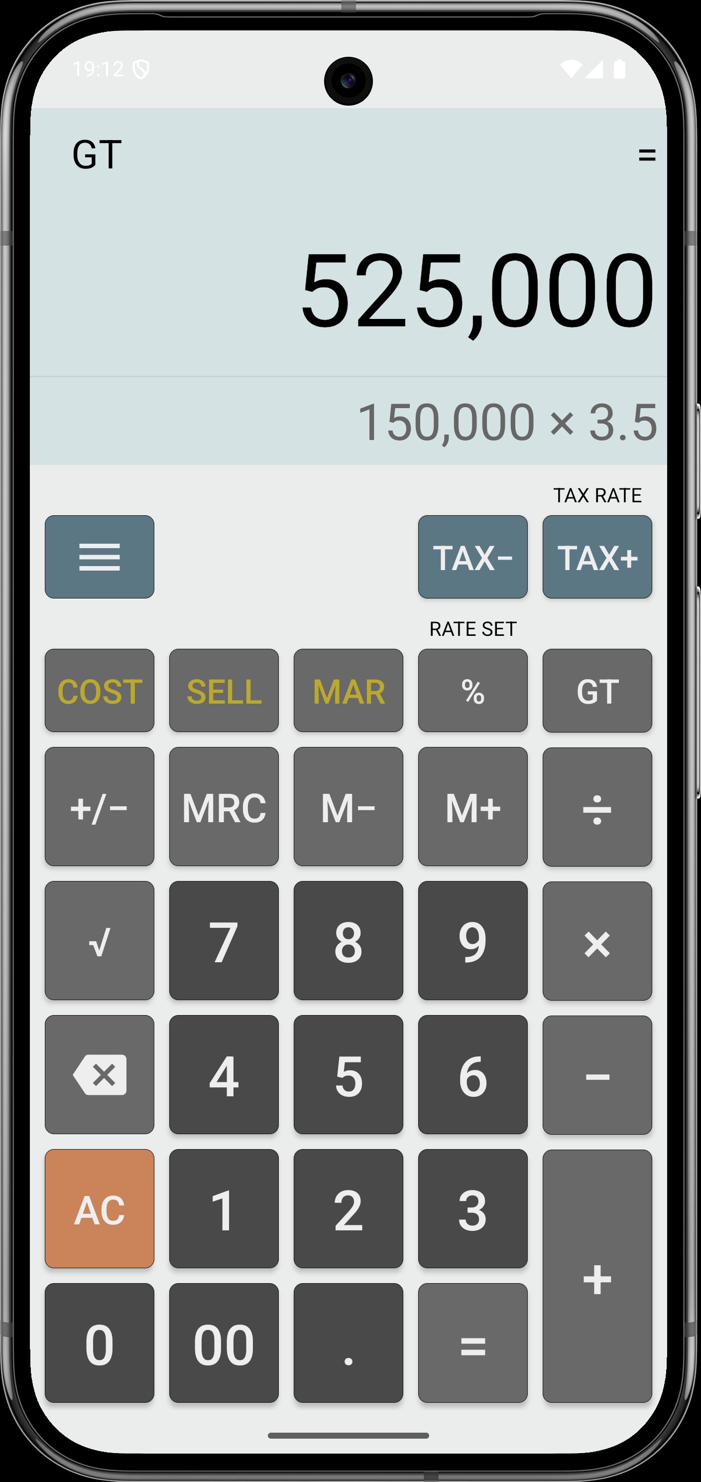 Tax Calculations: Dedicated TAX+ and TAX- buttons for instant GST, VAT, and sales tax computations.