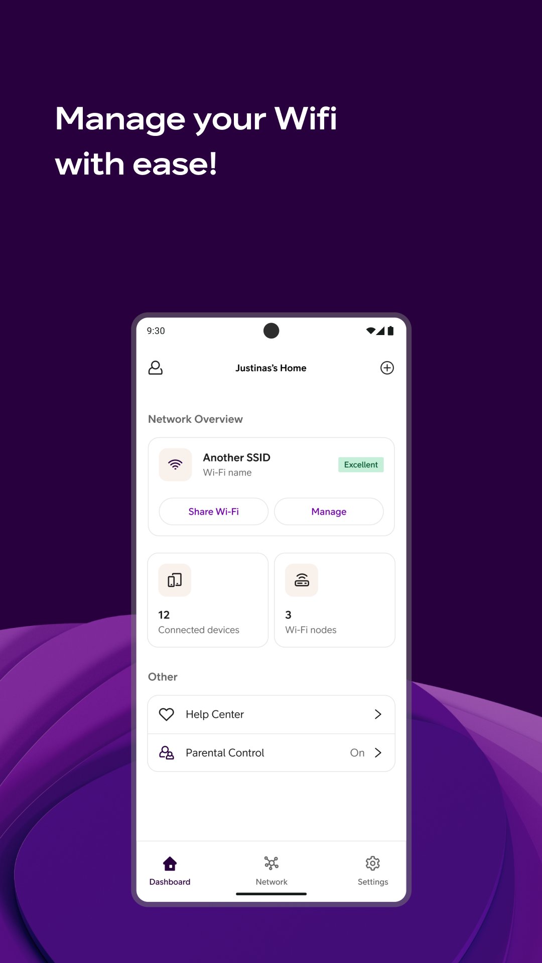 The app gives you an overview of all your devices and allows you to pause device if break is needed. In the app you can change easily network name or password. You can share guest network access to friends with the help of their phone camera.