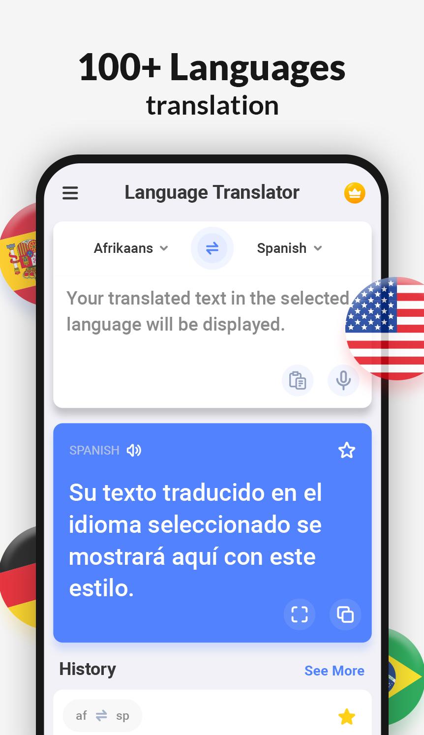 Break language barriers effortlessly with the Translate - Language Translator App! With support for 100+ languages, this free translation app offers text translate, voice translator, camera translation, screen translation, and a built-in dictionary—all in one place!