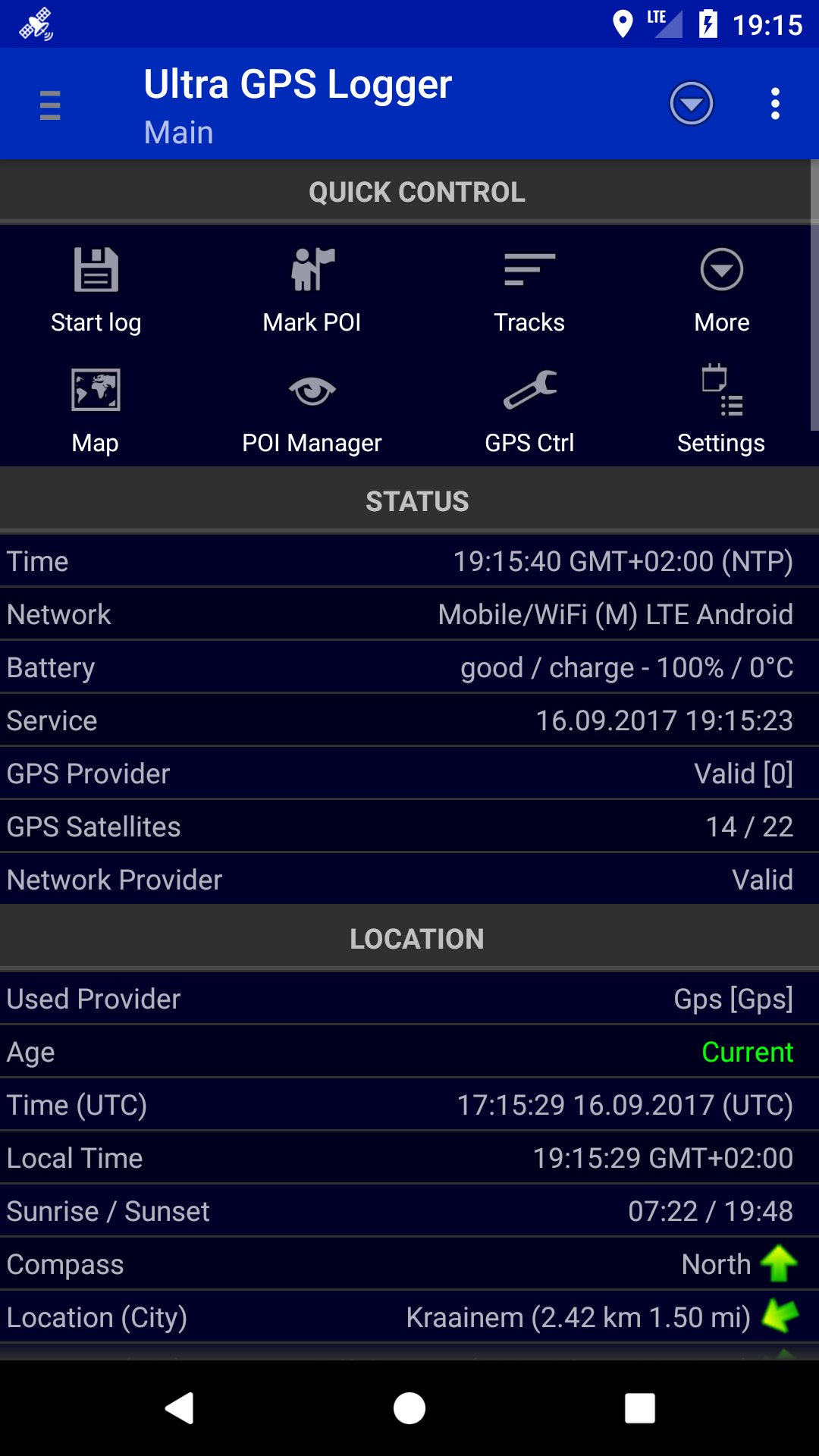 Ultra GPS Logger is a GPS Tracker which allows you to generate NMEA, KML and/or GPX logs with your GPS or GLONASS enabled Android device. It is able to keep GPS on during standby, which enables logging of a long period of time without the need of interaction with the device.