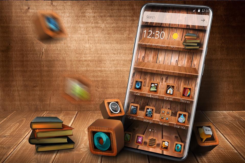 Wooden Book Shelf Theme makes your smart phone home screen more personal!