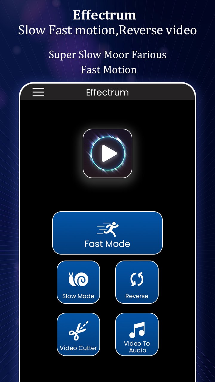 This Slow Fast Motion Video Editor : Slow Motion Video app, Fast Forward Video Effect application is for creating a new video with different speed to the original, Using this Slow motion video fx & Fast Motion Video fx you can change the speed of video and trim a video.