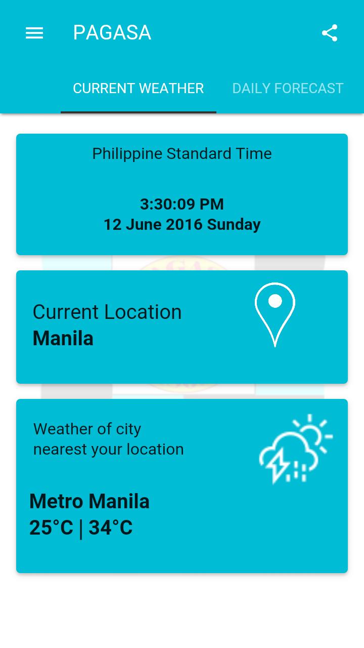The PAGASA Mobile App were compiled and simplified to help users gain a better understanding of the information disseminated and services offered by PAGASA for people from all walks of life. On a broader scope, this app aims to provide its users insight on the dynamics of the weather which changes on a daily basis and of the climate which changes over a greater period of time.