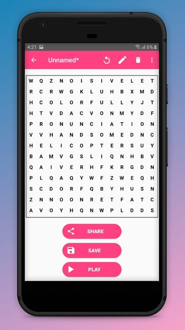 You can make, share in PDF format and play your word searches with this App.