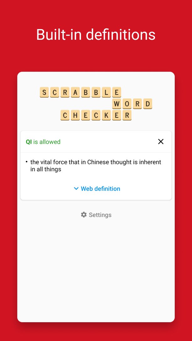 An easy-to-use word checker for SCRABBLE® and other word games with offline support and full definitions.