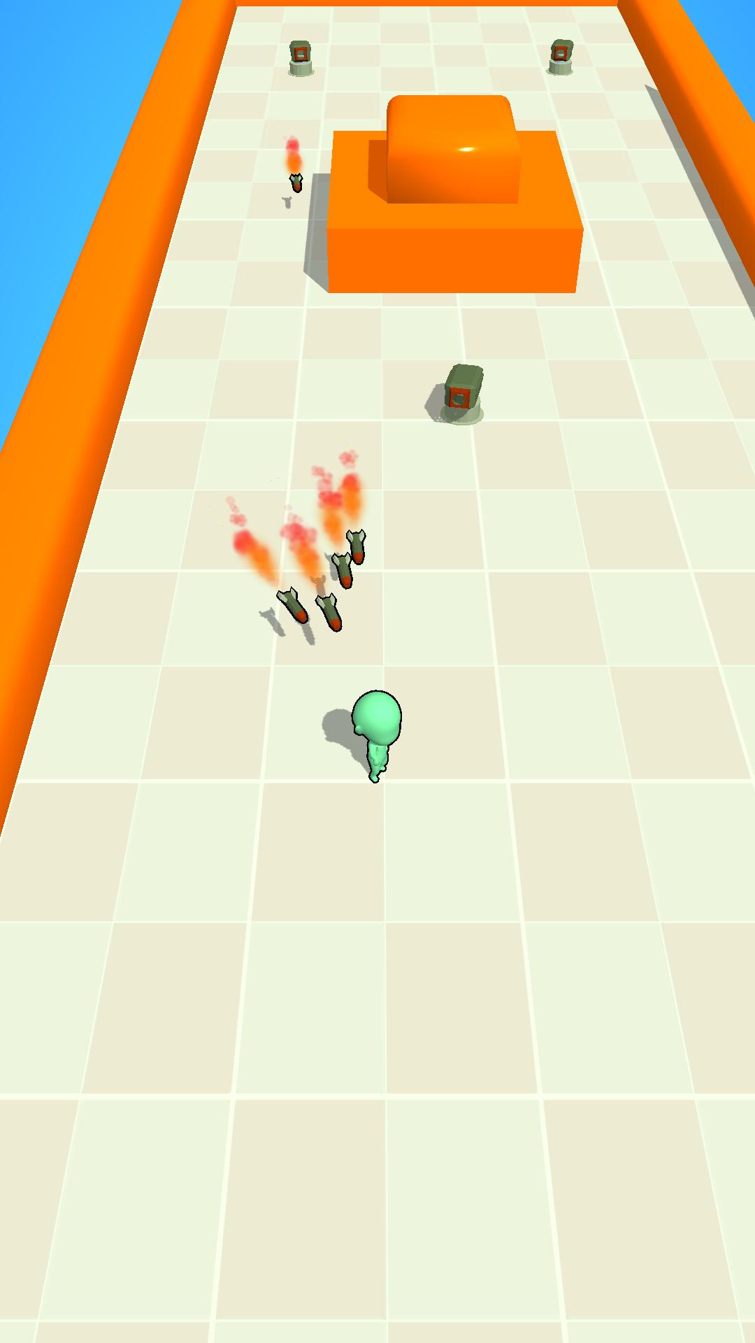 Lots of enemies will come towards you. Don't be afraid, just run away and let the moving obstacles clear them for you.