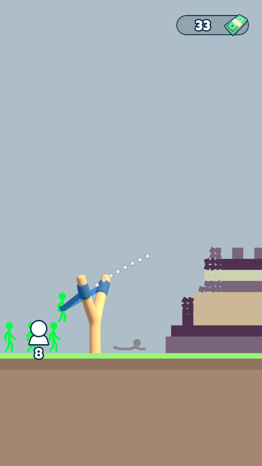 Launch the stickman with a slingshot at the buildings and destroy them while collecting money. Money can be spent on upgrades: increasing the number of stickmans, the number of hit points of stickmans, and the strength of the slingshot. Go through many levels and get powerful stickmans.