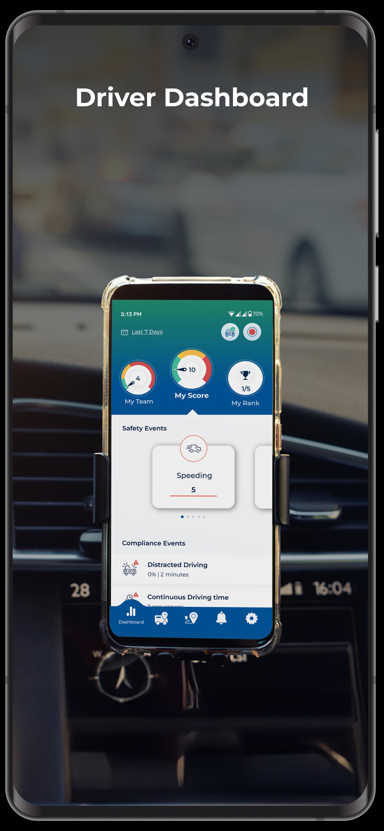 • Gamification - each driver is assigned with a safety score reflecting the frequency of their safety events. Drivers are motivated to improve their safety scores and team rankings.