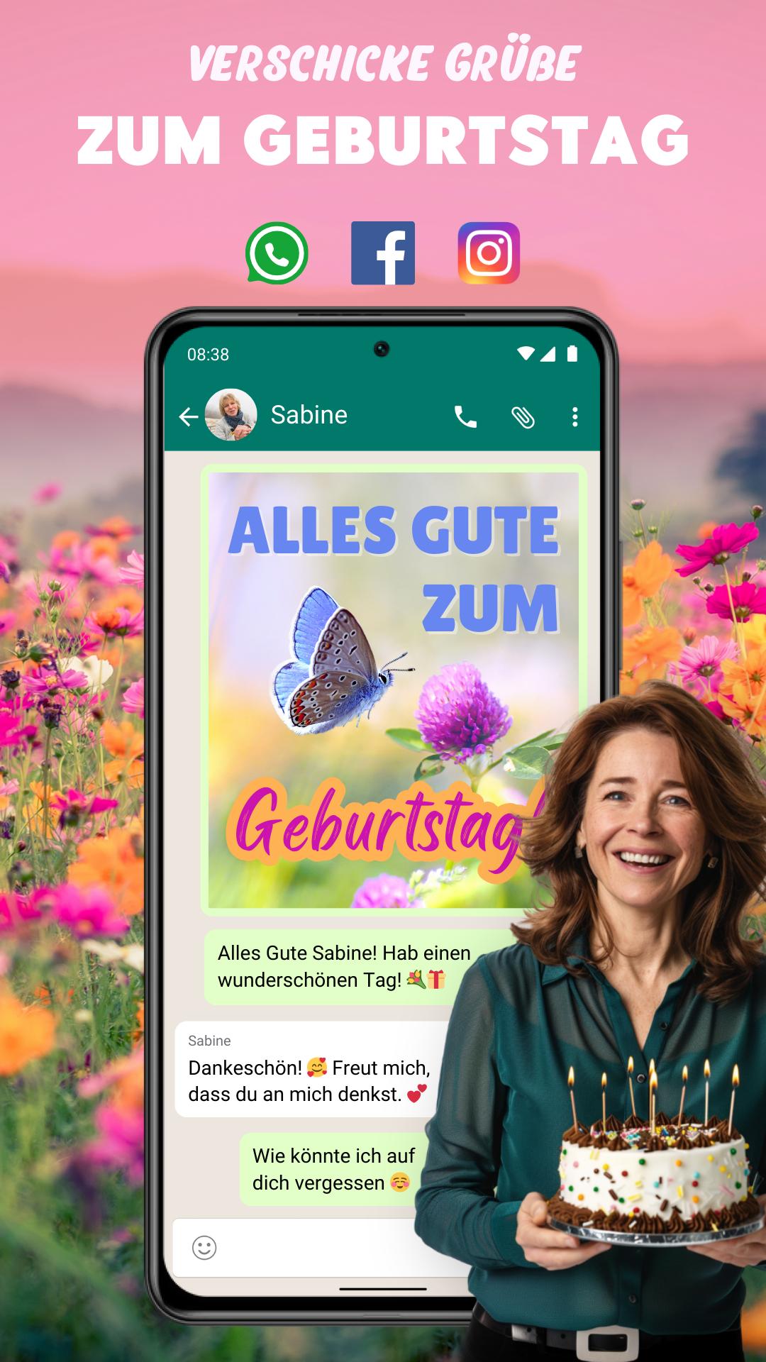 來自發行商 sprüche-app.de - Bilder und Videos zum Verschicken 的 Glückwünsche & Geburtstags App 能夠在安卓系統上運行。