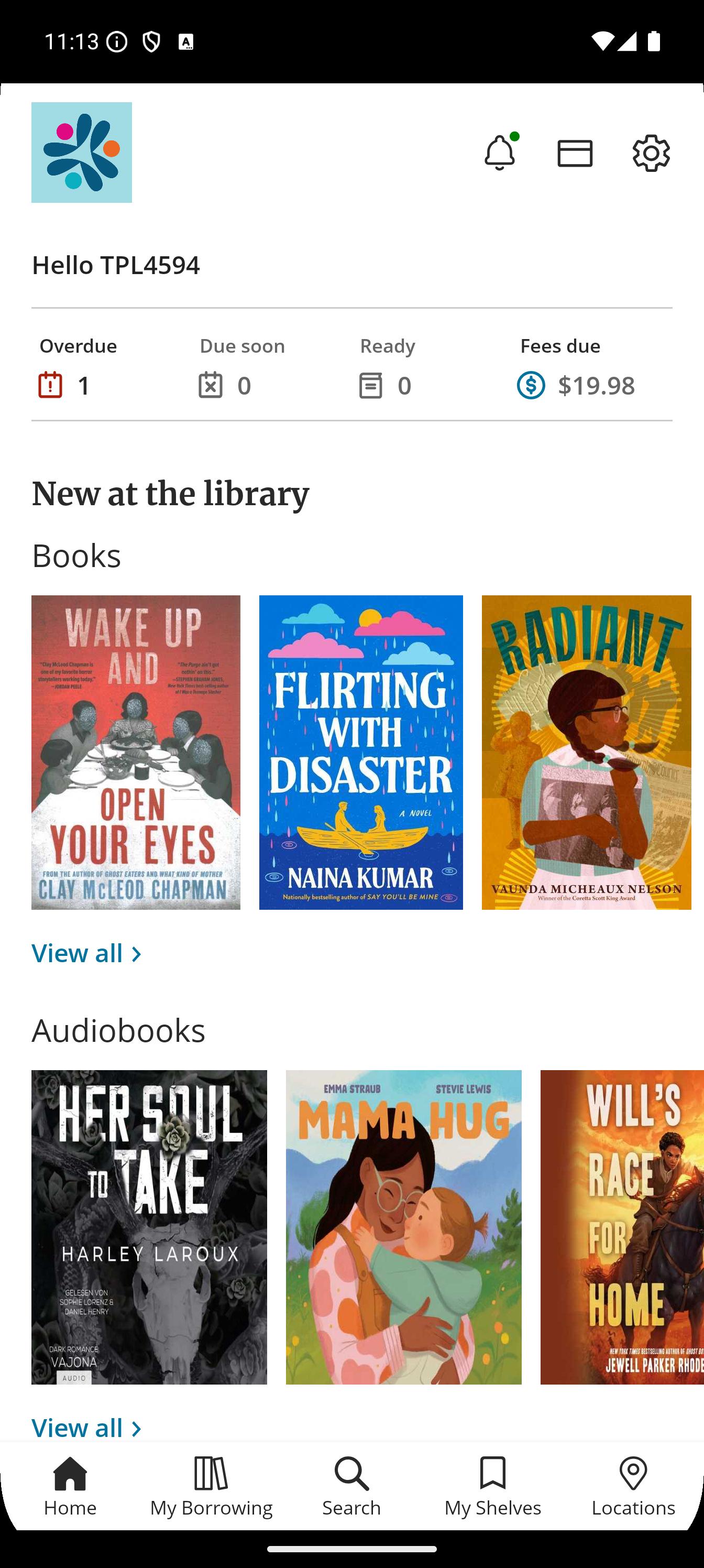 • Instantly check due dates and renew your items