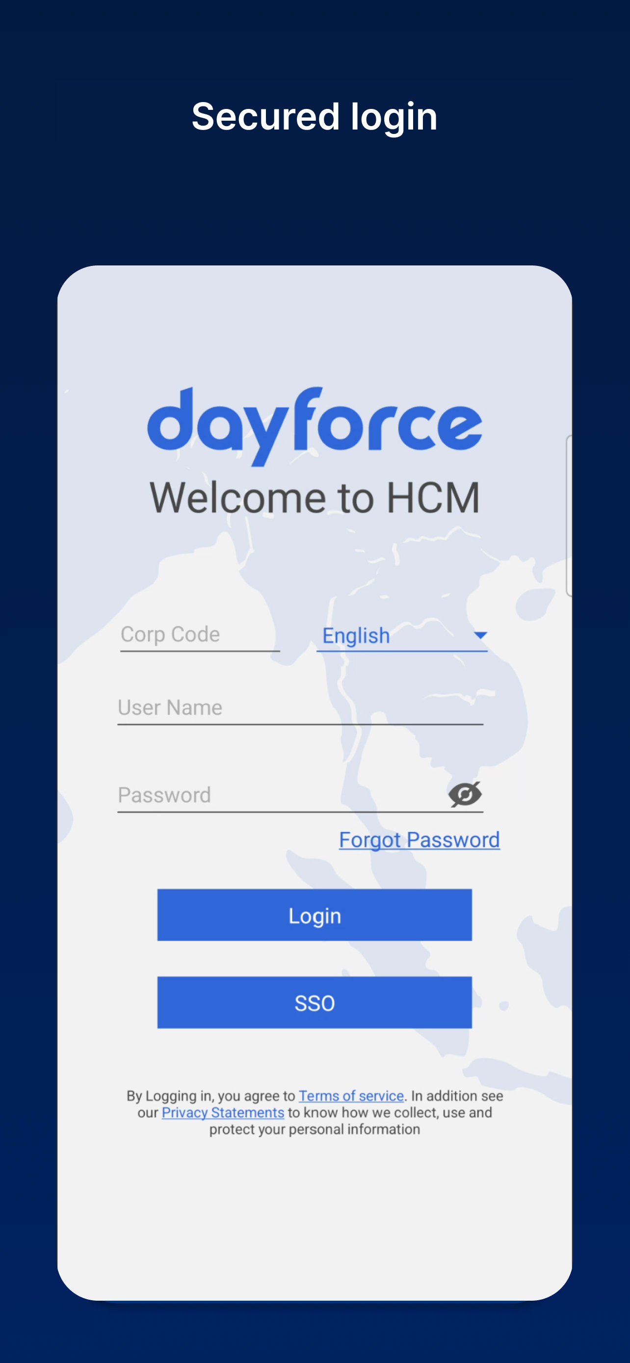 * User having HCM web portal access they can use Excelity HCM mobile app as well without having any other extra configuration and they can use the same UserID , password and corpCode which works for web portal.