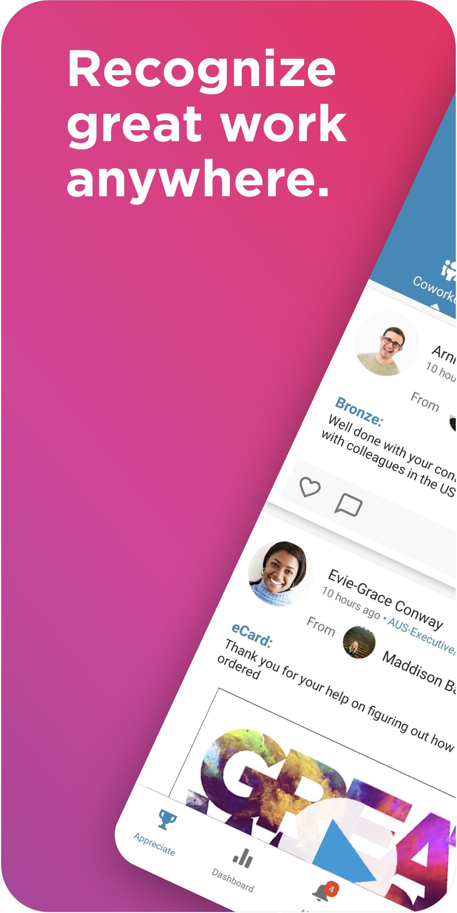 The Great Work app from O.C. Tanner makes recognizing great work easy. Whether you’re celebrating small victories or team triumphs, having the ability to send recognition at your fingertips is an essential part of a thriving workplace culture.