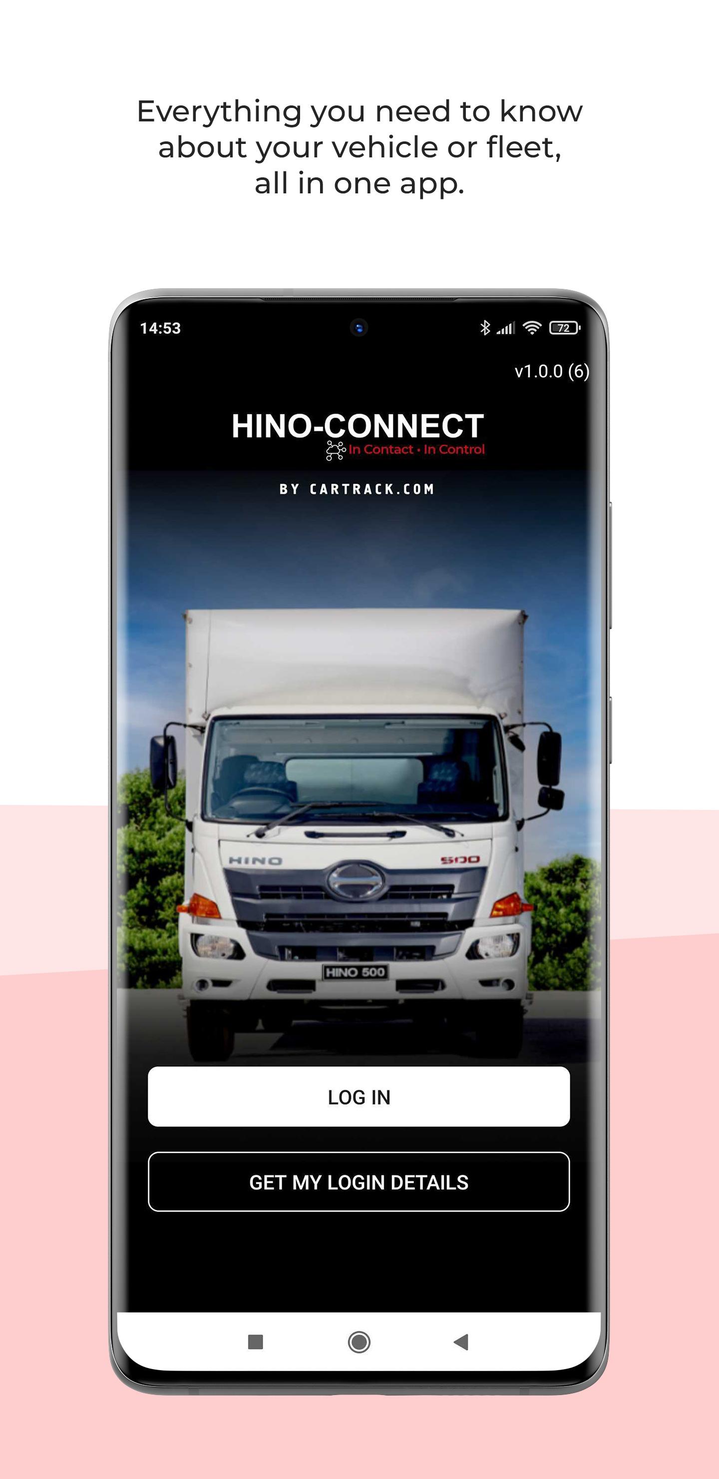 The HINO-CONNECT app is brought to you by HINO, in partnership with Cartrack, to keep you in contact with your HINO vehicle at any time, all at the touch of a button.