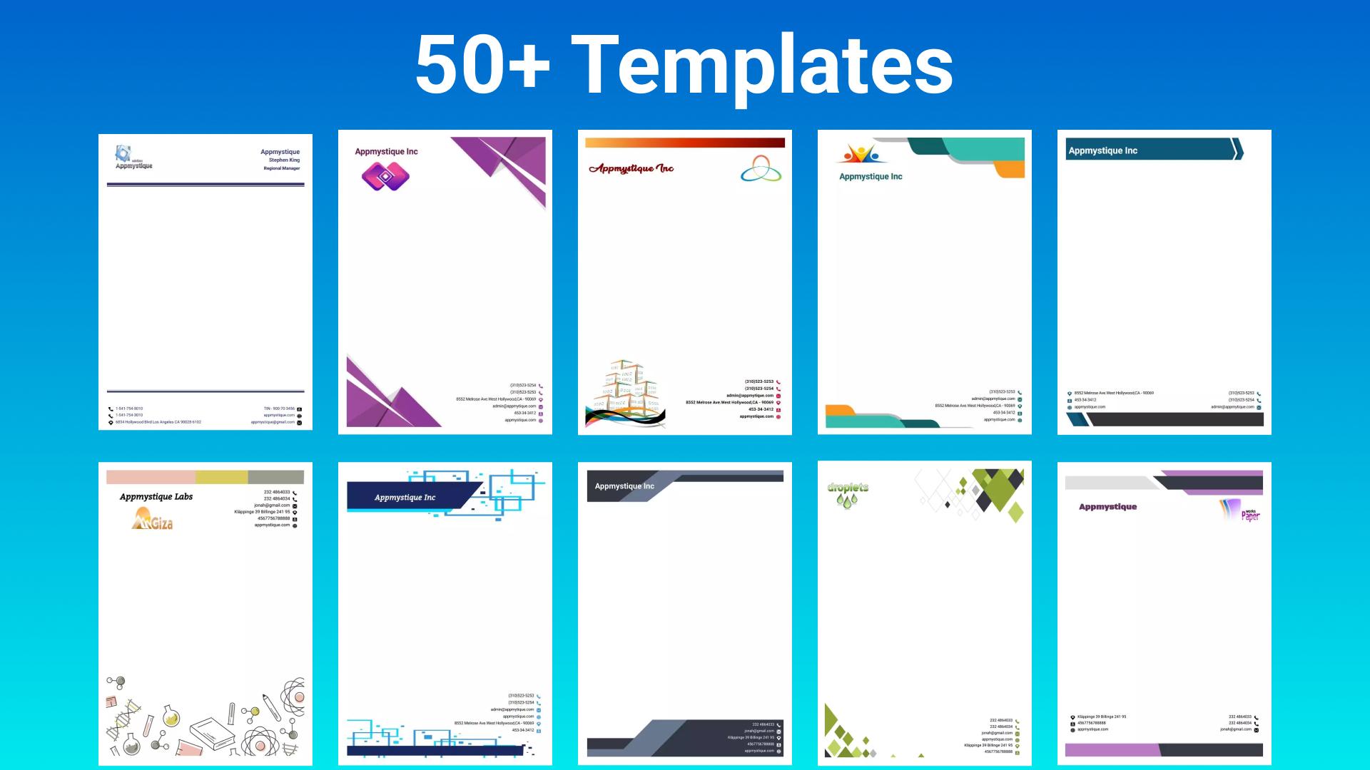 Our Letterhead Maker app will help you create your Letterhead in minutes. Choose a Letterhead template that suits your needs and create it easily!