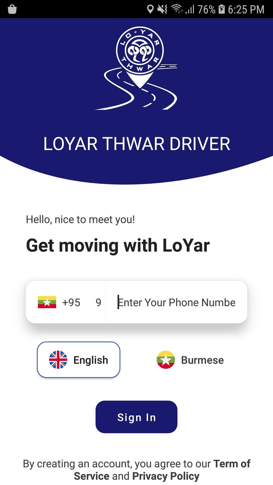 LoYar Thwar Application is ride-hailing services in Myanmar. This application aims to provide a smart tool to facilitate the services provided and improve the communication with drivers and passenger. Our vision is to be a local ride-hailing leader that provides convenient, safe, reasonable price and trust service to our passengers and drivers. Receiving real-time ride requests made easy for driver by using LoYar Thwar Driver. LoYar Thwar driver app has made transportation shown in kilometers based and distance per charges so drivers are no need to calculate transportation charges and easier in a lot of ways. This is the service for those who want to make more earn money. Drivers can get the detailed summary of the trip they last took including the time taken, distance, and a trip map. Drivers can use the Google Maps-powered navigation feature in the best taxi dispatch app between Pickup and Drop location and ETA information. Drivers can track their daily trips earnings and can make more earn money.