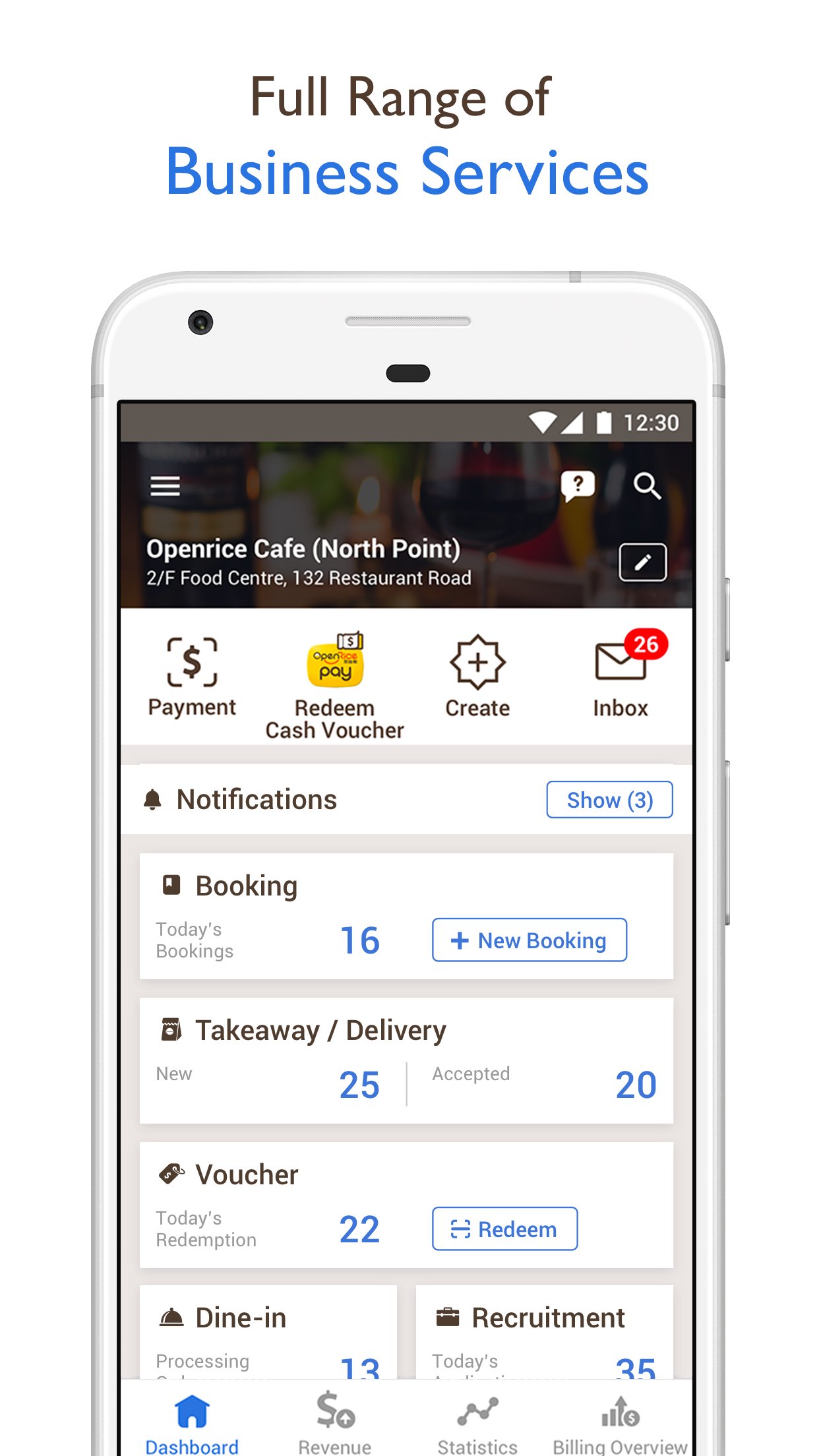 The OpenRice Biz app is a vital tool for restaurant owners, managers and staffs to easily manage daily restaurant operations. From Table Bookings to managing Takeaway orders, creating attractive Offers to selling Vouchers, supporting remote Queuing and Recruitment services. It is a one-stop solution catered for restaurant needs and maximizing exposure across all OpenRice platforms regionally.