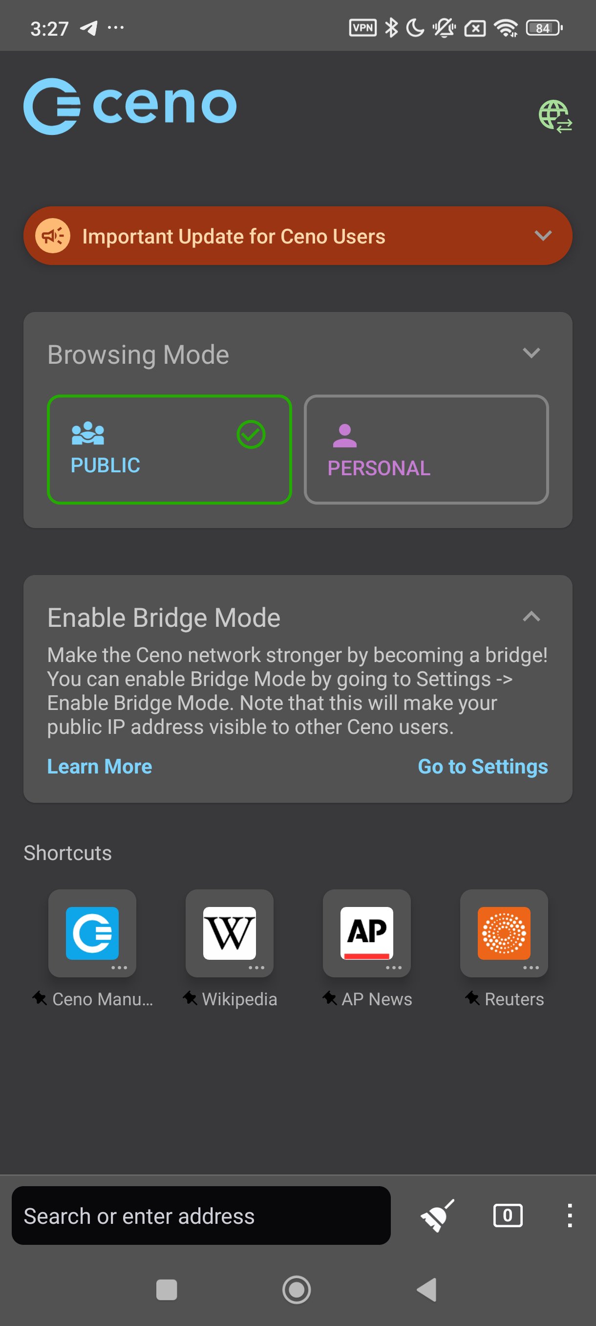 只需在電腦大屏幕上免費下載暢玩Ceno Browser: Share the Web 電腦版!