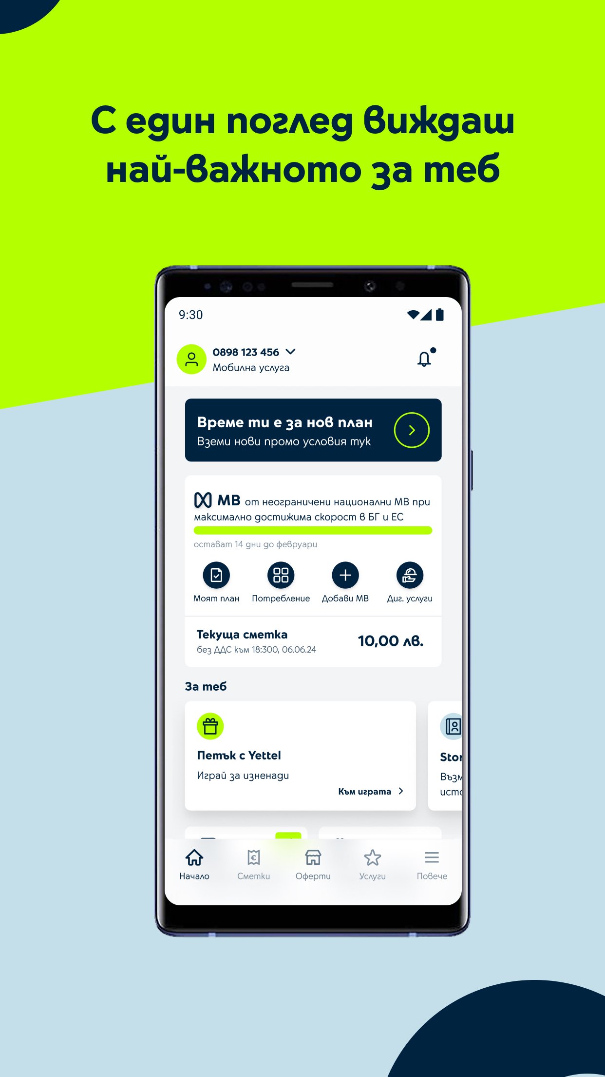 Yettel 應用程式可供所有 Yettel Bulgaria EAD 的訂閱、預付或商業計劃客戶使用。需要比 Android 5.1 更新的作業系統,並支援保加利亞語和英語。您可以透過行動網路使用它或透過 Wi-Fi 連線。