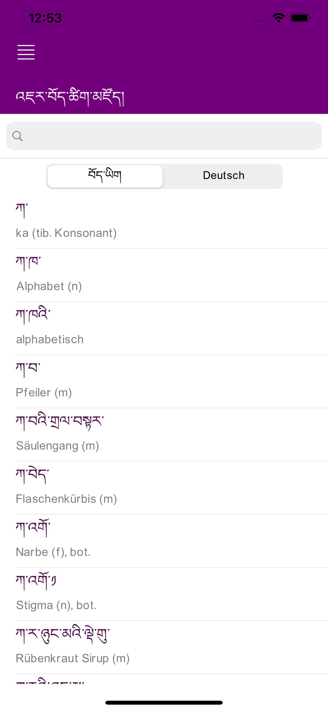 The “German-Tibetan Dictionary” app is a joint project of Monlam Tibetan IT Research Center (India) and the Tibet Institute Rikon (Switzerland).