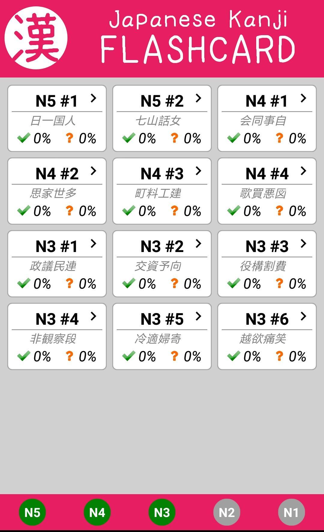 5. Flashcard completed by 100% cards is known kanji.