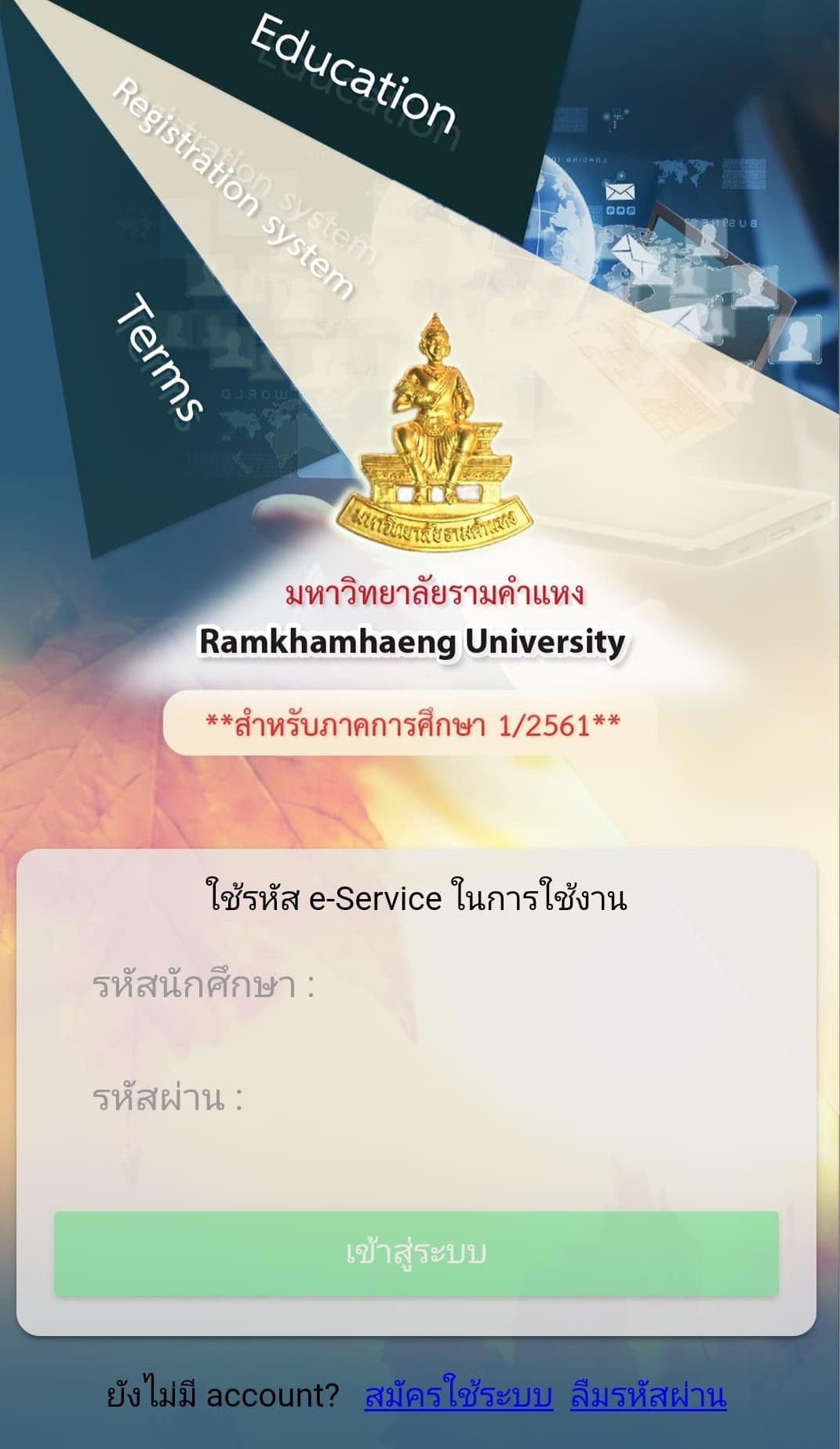 An application for enrollment ahead of Ramkhamhaeng University. As a service through mobile registration.