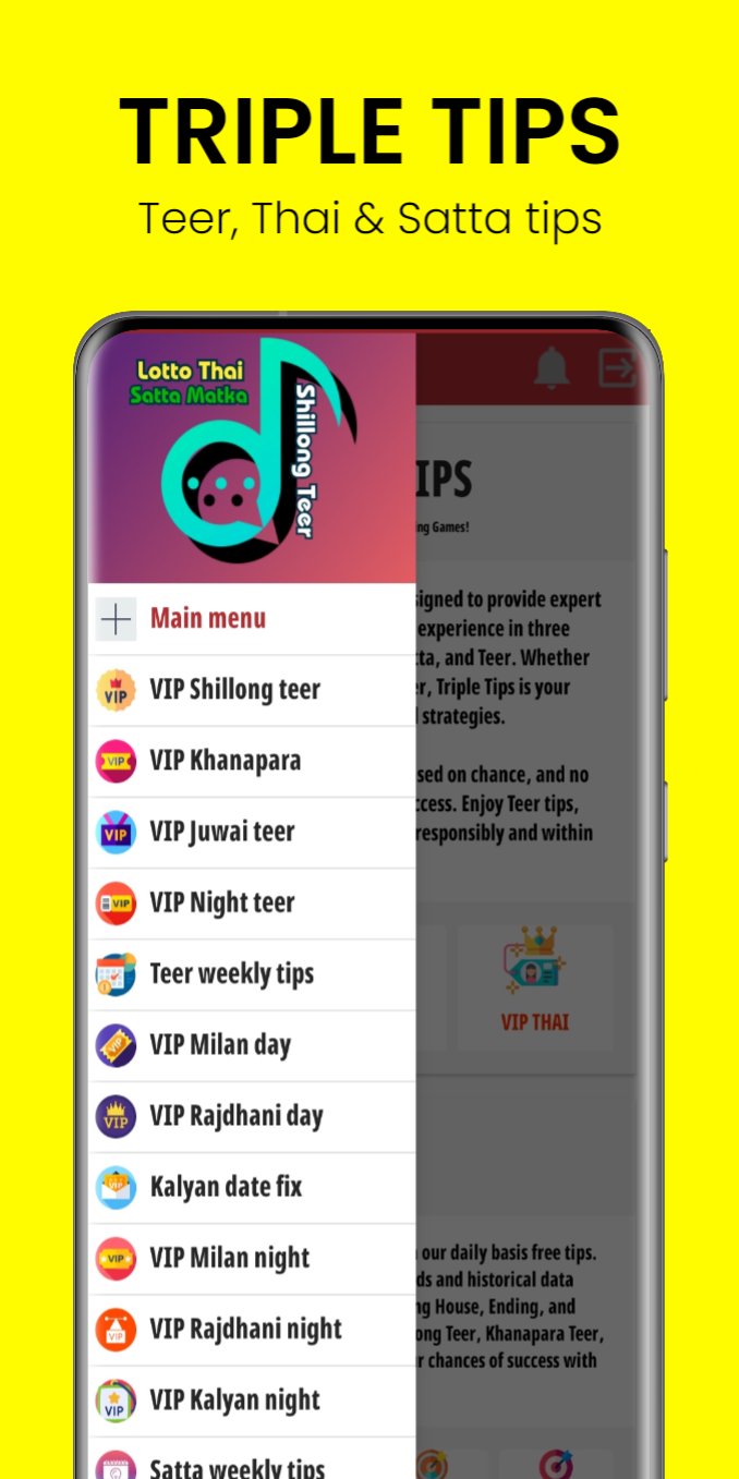 Disclaimer: Triple Tips is not a gambling app, and we are not affiliated with any Teer counter or gambling business. We solely provide tips and suggestions to our app users for informational purposes. Please note that Triple Tips is not the official app of Shillong Teer, Indian Satta, or Lotto Thai. We aim to offer valuable insights and strategies to enhance your gaming experience. However, we cannot guarantee the accuracy or success of these tips. We encourage responsible gaming and advise users to participate within their means.