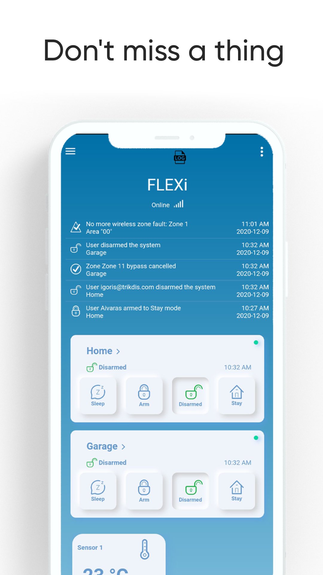 Receive real-time alarm status and arm or disarm your security system remotely. Get instant alerts in the event of a security alarm, or simply be notified when your family arrives home.
