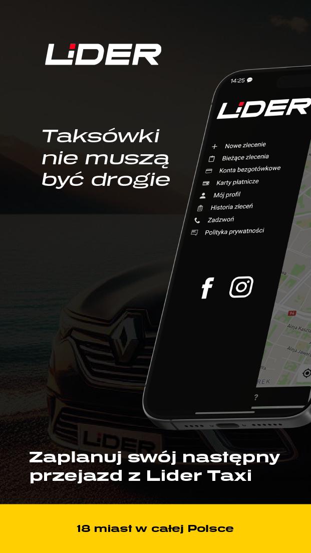 Application for ordering taxis at Lider Taxi in Silesia, Bielsko-Biała and Wrocław.