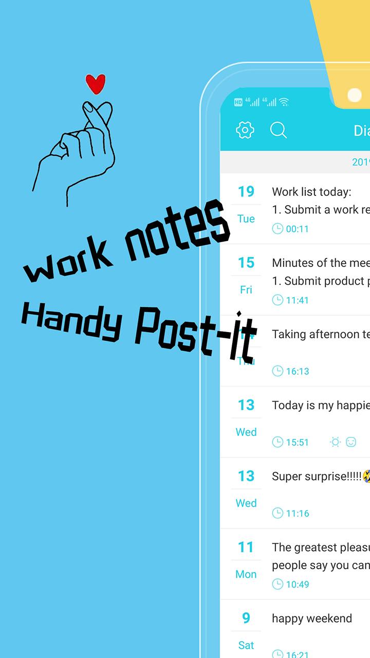 You can locked encryption, make work notes and life essays, also markup small emotions, weather, positioning and pictures to make the diary vivid!