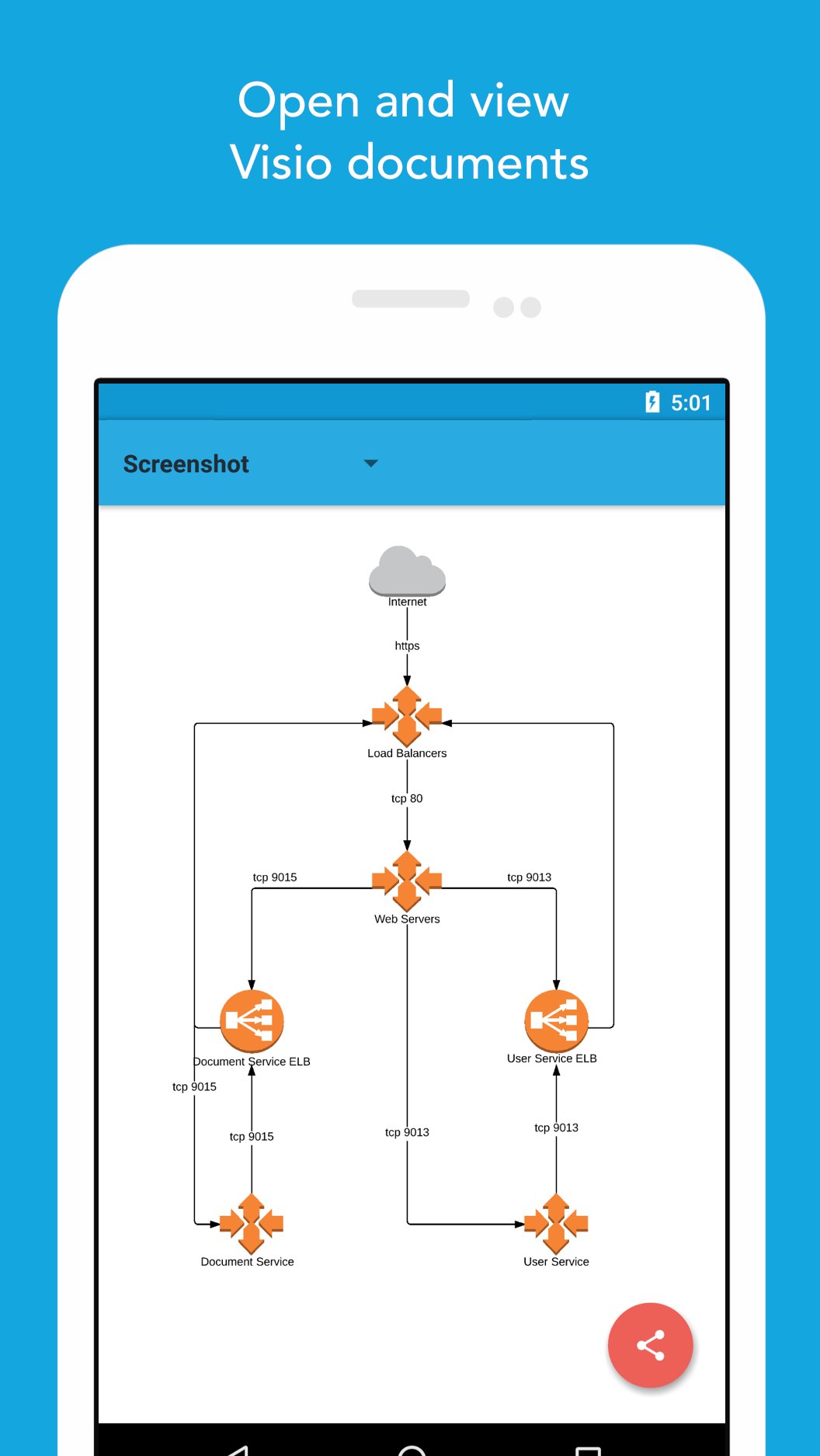 Lucidviewer for Visio Diagrams lets you view Microsoft Visio files on your Android device. Import MS Visio documents from any folder or app, and export diagrams as PNG or PDF.