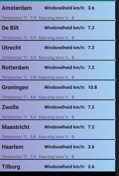 Je kan het weer zien in een aantal steden en zelf een stad of drop invullen om daar het weer te kunnen bekijken