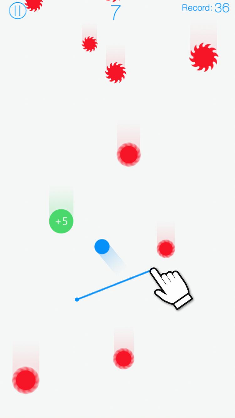 Menggambar garis dengan jari Anda untuk bangkit bola biru di sekitar.