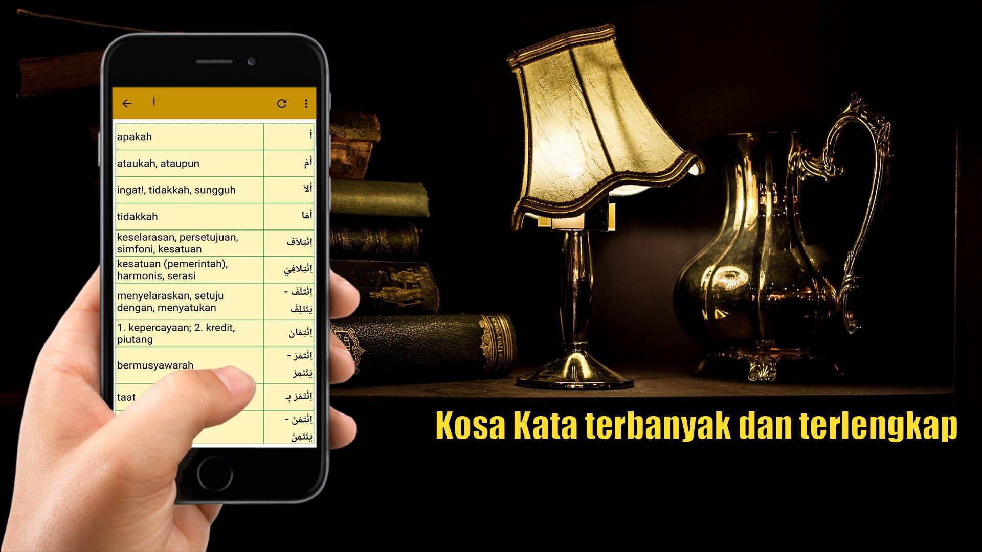 aplikasi ini terdiri dari 15.000 lebih kosa kata bahasa arab yang di terjemahkan kedalam bahasa indonesia, yang mencakup kata kata yang biasa di gunakan dalam dunia pendidikan.