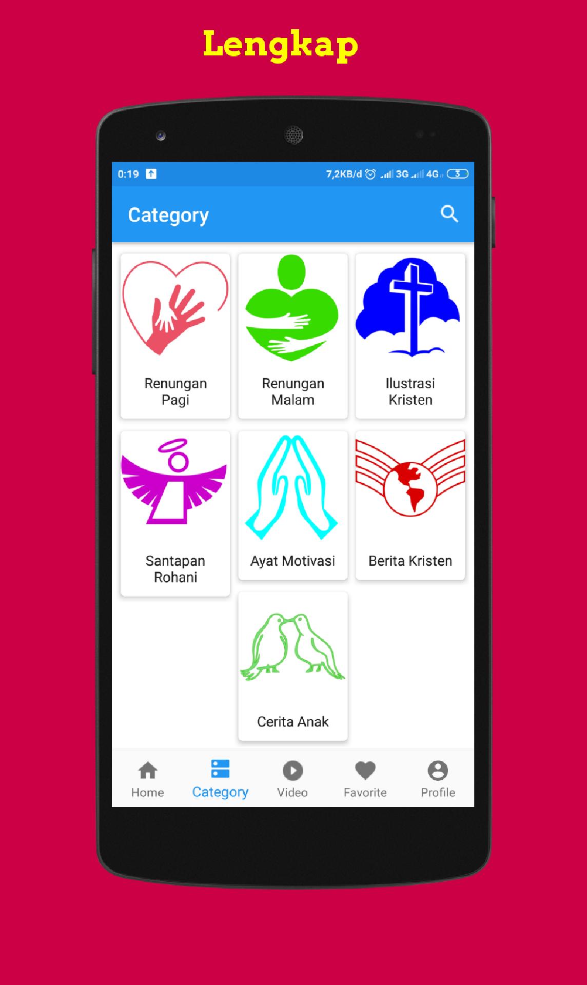 Di dalam aplikasi ini banyak sub menu seperti ayat motivasi, renungan pagi, renungan malam, ilustrasi Kristen, motivasi dll.