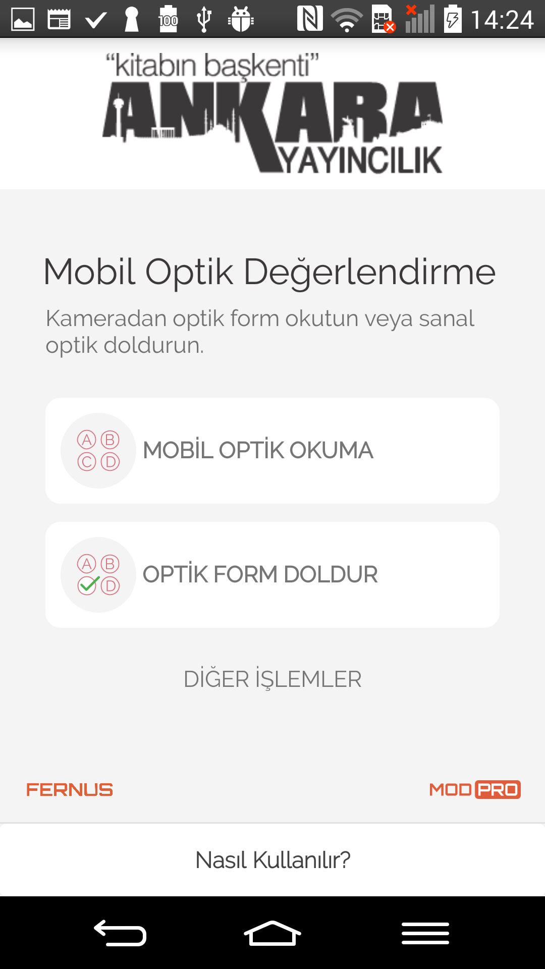 Ankara Optik Okuma, berasal dari pengembang FERNUS, berjalan di sistem Android di masa lalu.