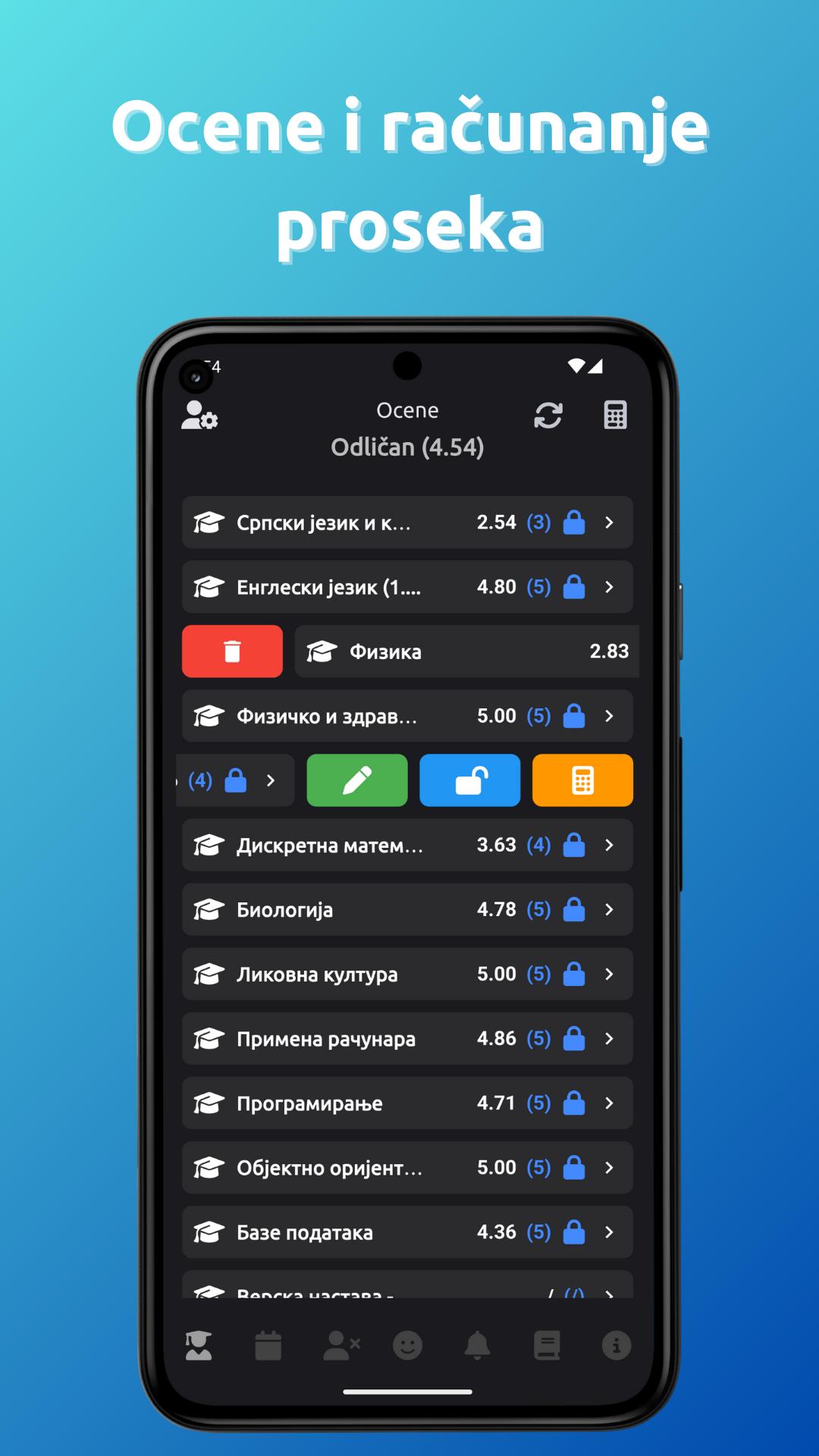 Nilai dan Perhitungan Rata-Rata: Opsi ini menghitung rata-rata untuk Anda. Anda dapat menyimpulkan nilai sesuai keinginan, meskipun Anda tidak memiliki rata-rata yang sama. Anda tidak perlu memasukkan semua mata pelajaran dan nilai secara manual - aplikasi dapat secara otomatis mengimpor semua mata pelajaran, nilai, aktivitas, dan absensi Anda dari esDnevnik resmi!