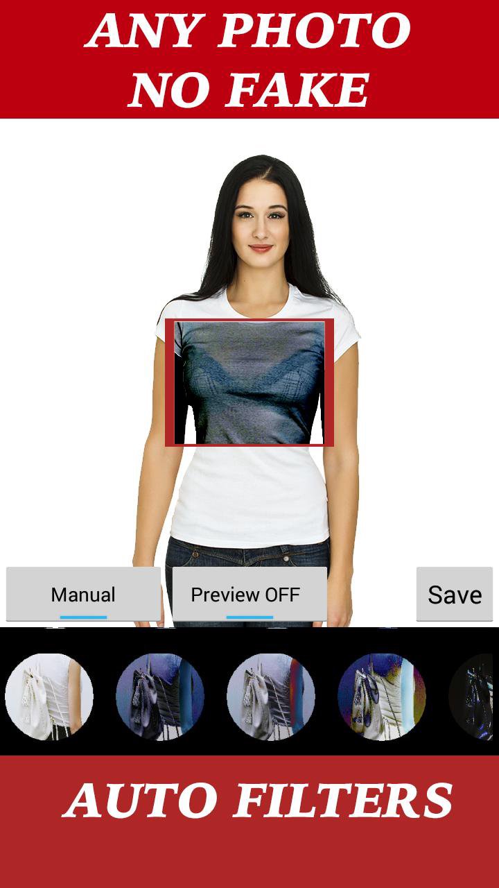 This app uses science to see through clothes, like x-ray, is not another joke or fake app to undress, remove clothes ,undress, get people naked, or xray bra underwear prank, no nude / nudity or sexy images inside, our revolutionary algorithm use the brightness, lights, contrasts and color channels in an optimal combination for each picture. No magic or lies, only science.