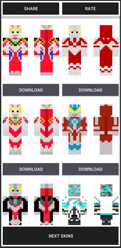 Get new Ultraman Skins for Minecraft for free and show how great you are at playing minecraft! Install your favorite Ultraman skin style and customizable skins with fun in Minecraft PE (MCPE) creative mode theme.
