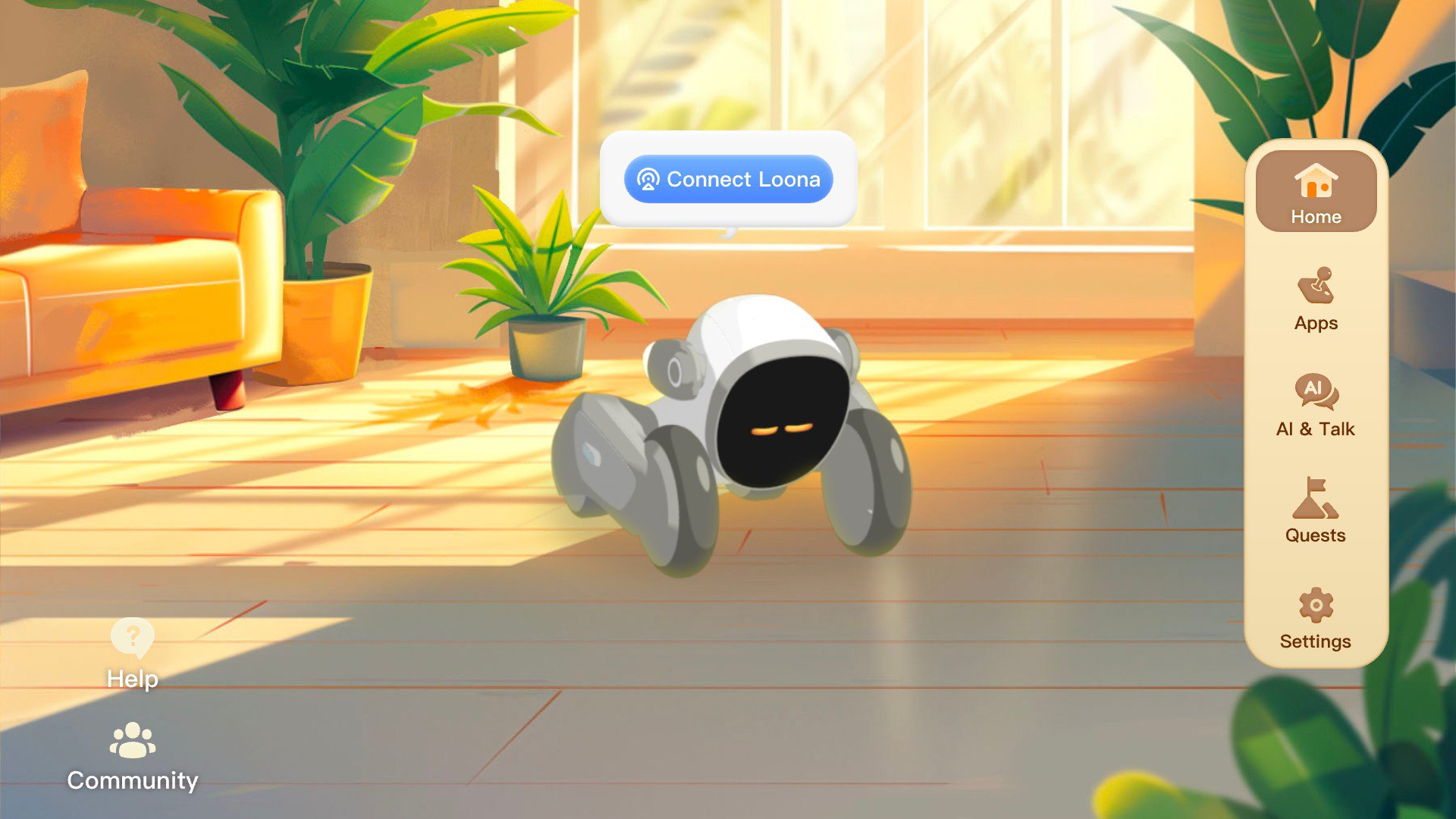 Loona APP adalah perangkat lunak kontrol dan pemrograman seluler yang dikembangkan untuk robot Loona. Skenario aplikasi robot kaya disediakan dalam aplikasi. Pengguna dapat merasakan berbagai kontrol dan fungsi robot dengan menghubungkan robot sesuai dengan panduan perangkat lunak. Robot dapat dikontrol di APP untuk melakukan pertunjukan bakat, bermain game kecil, dan juga memasuki komunitas untuk berkomunikasi dengan pengguna lain.