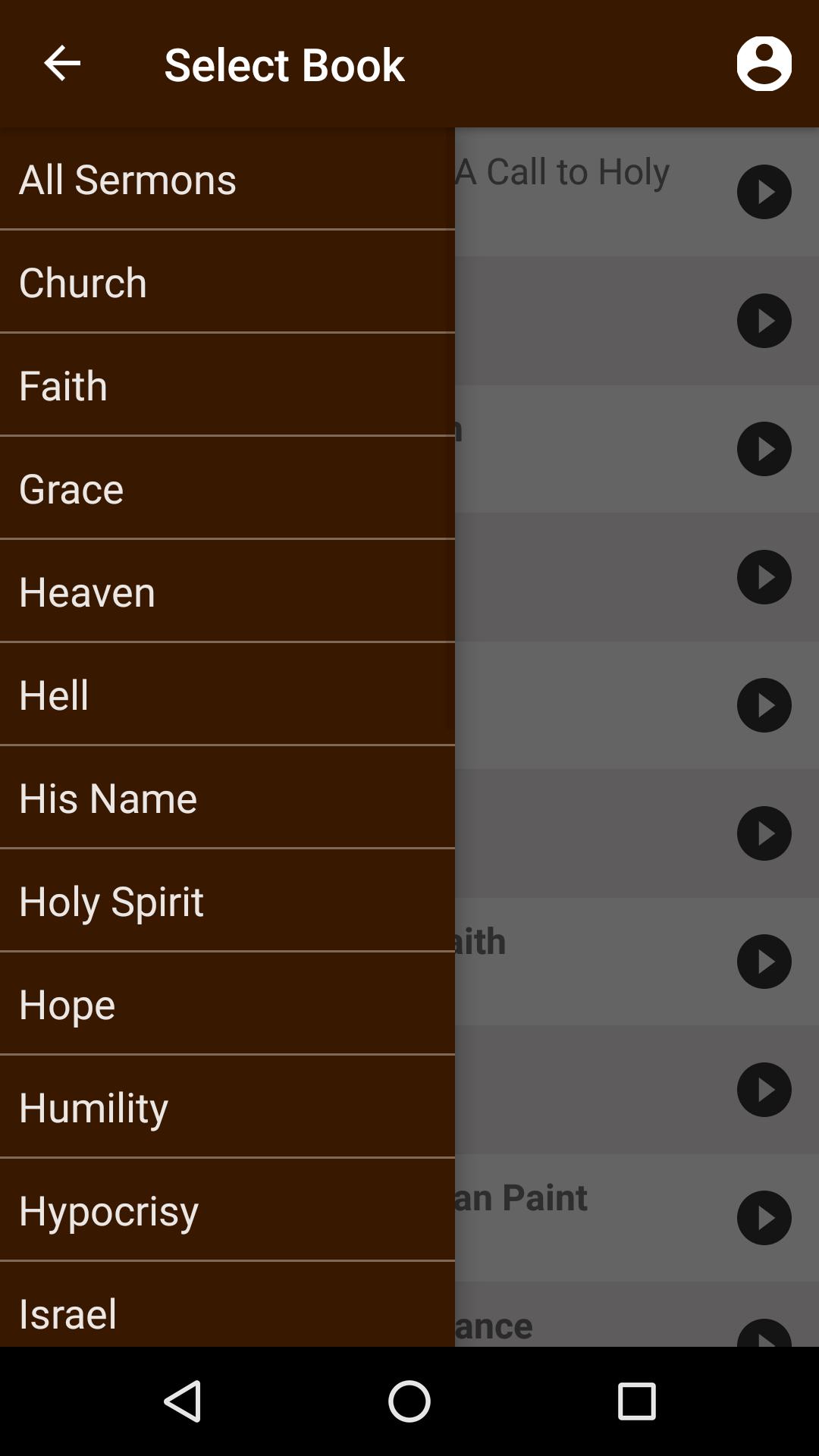 Khotbah mencakup banyak topik, termasuk namun tidak terbatas pada Nama-Nya, Gereja, Iman, Rahmat dan banyak lagi.