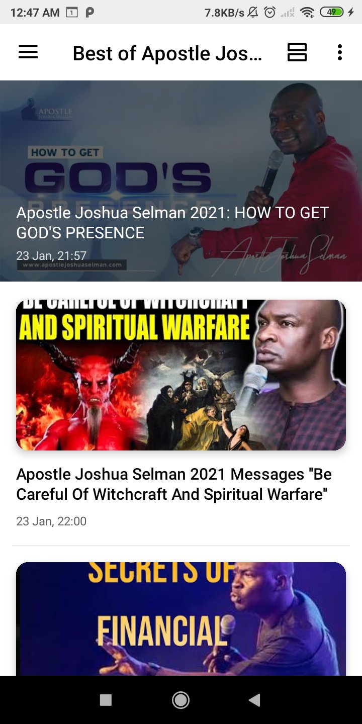 Apostle Joshua Selman, berasal dari pengembang Ohemaa Apps, berjalan di sistem Android di masa lalu.