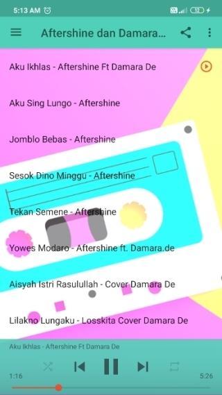 Aplikasi ini berisi kumpulan lagu terbaru yang enak di dengar dari Aftershine dan Damara De, beberapa list lagu yang bisa dedengarkan dengan syahdu dan merdu diantaranya adalah :
